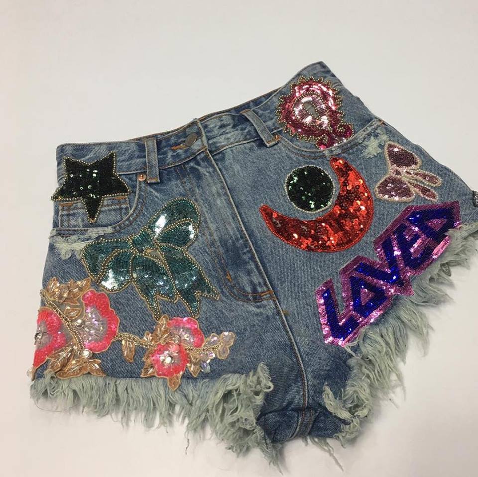 Эти джинсовые шорты Gucci LUX-10477 представляют собой яркий и стильный элемент гардероба. Они украшены разнообразными аппликациями в виде пайеток, включая звезду, бант, полумесяц, цветочное оформление и надпись "LOVE". Оригинальный дизайн и обилие деталей делают эти шорты настоящим акцентом образа.