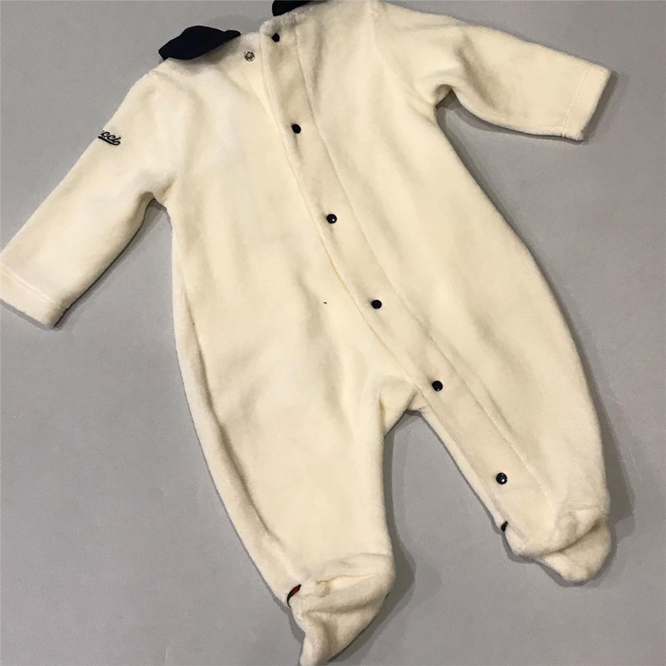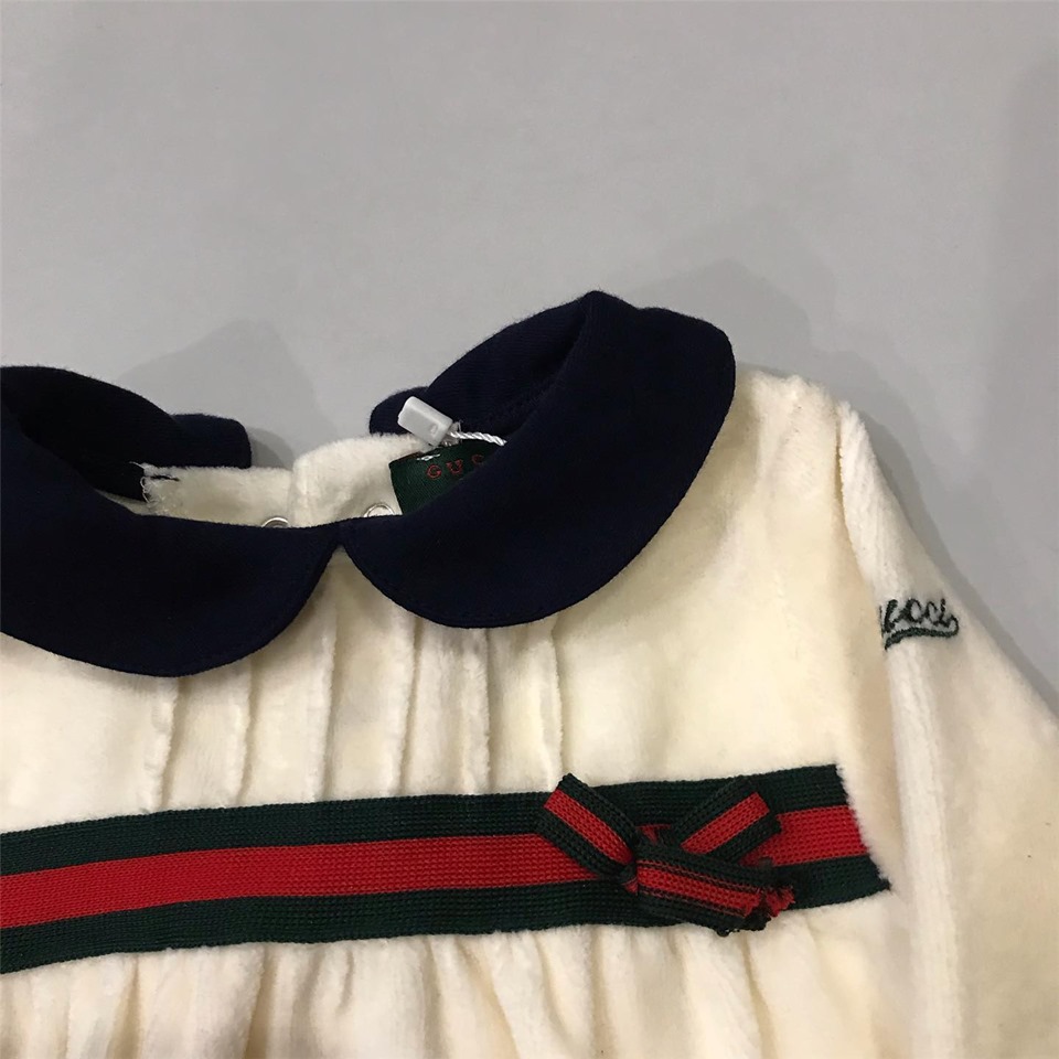 Этот милый слип Gucci LUX-20496, выполненный в кремовом цвете, представляет собой идеальное сочетание комфорта и элегантности для самых маленьких. Дизайн подчеркнут контрастным темно-синим воротником и изящной полосой с красным и темно-зеленым оттенками, украшенной маленьким бантиком. Нежная ткань и продуманный крой обеспечивают свободу движений и максимальный уют.