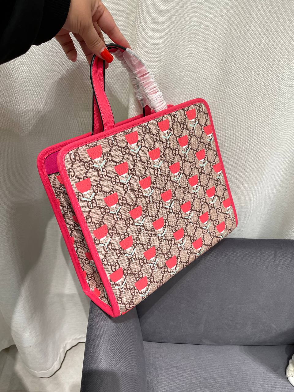 Сумка Gucci LUX-118552 – это воплощение элегантности и стиля. Сумка выполнена в оригинальном дизайне с ярким цветочным принтом, который привлекает внимание. Розовые детали и ручка придают аксессуару женственность. Она идеально подходит для повседневного использования и станет ярким акцентом вашего образа.