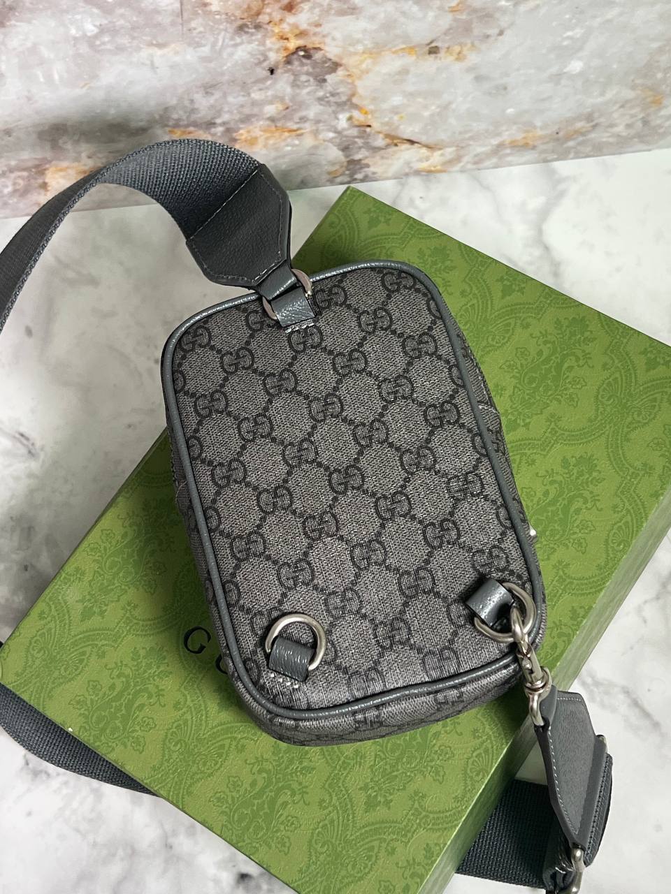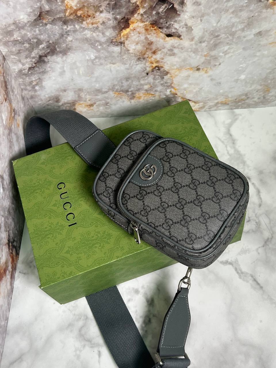 Сумка мужская Gucci LUX-93110 представляет собой стильный аксессуар для современного мужчины, выполненный в фирменном стиле бренда. Сумка выполнена в сером цвете с узнаваемым логотипом и узором Gucci, что придает ей элегантный и узнаваемый вид. Отлично подойдет для повседневного использования, дополняя любой образ.