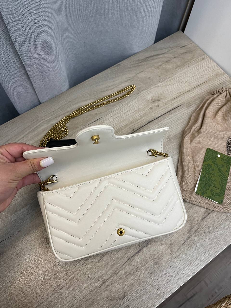 Сумка женская Gucci LUX-95744 — это элегантная сумка через плечо от известного бренда. Она выполнена в минималистичном стиле, молочного цвета с золотистой фурнитурой. Сумка идеально подойдет для повседневного использования, а также для особых случаев.