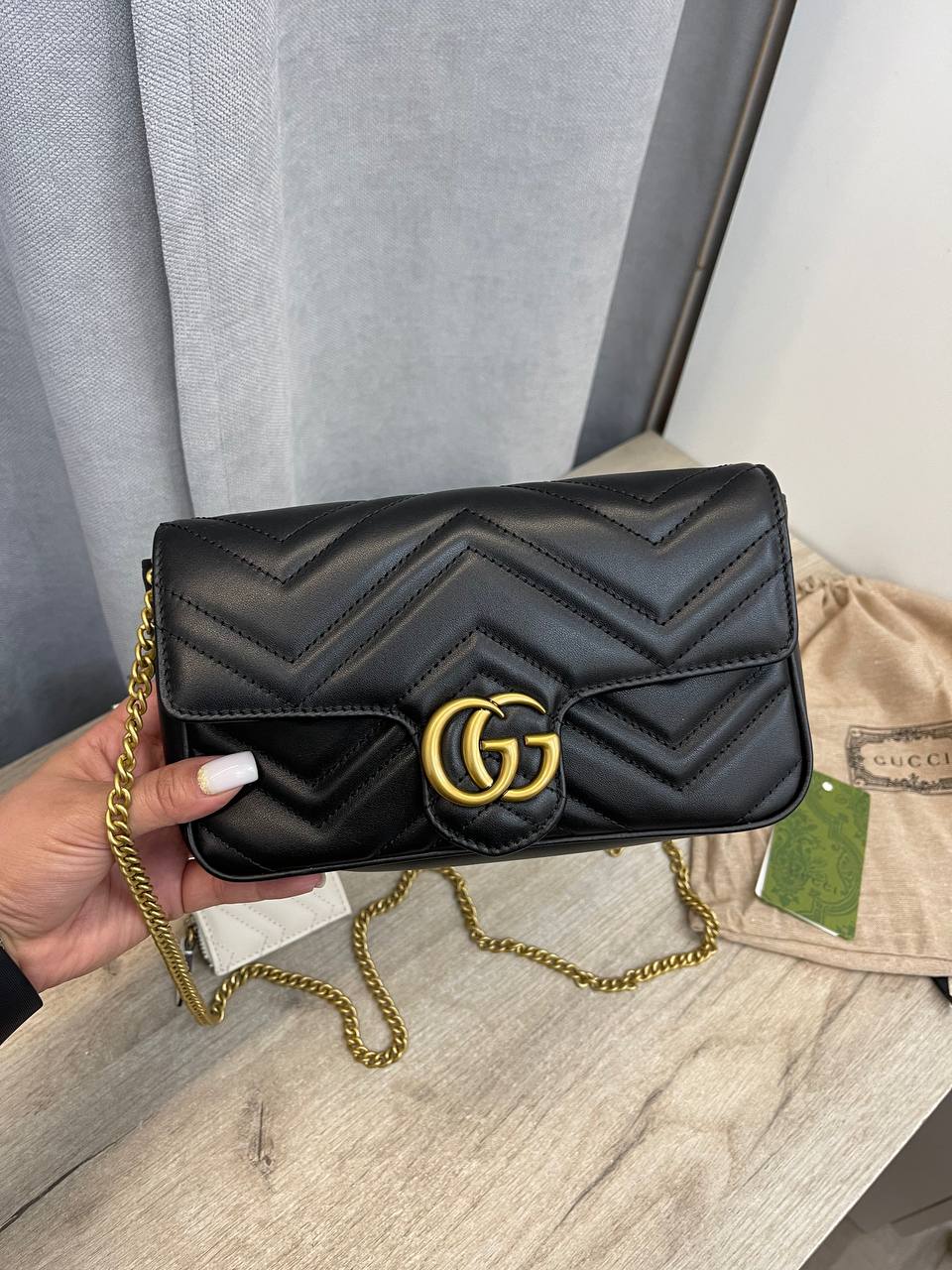 Сумка женская Gucci LUX-95745 — воплощение элегантности и стиля от известного бренда. Черная сумка с золотой фурнитурой выполнена в классическом стеганом дизайне. Она идеально подойдет для создания как повседневных, так и вечерних образов, подчеркивая изысканный вкус своей владелицы.