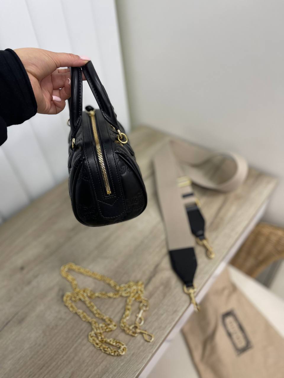 Сумка женская Gucci LUX-84204 – это элегантный аксессуар, выполненный в классическом стиле. Черный цвет, стеганая текстура и округлая форма делают её универсальной для различных образов. Сумка подходит для повседневной носки и для особых случаев.