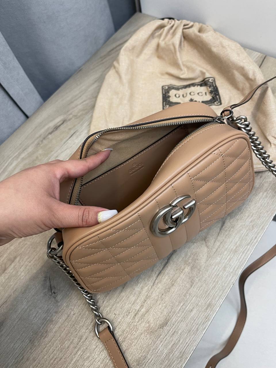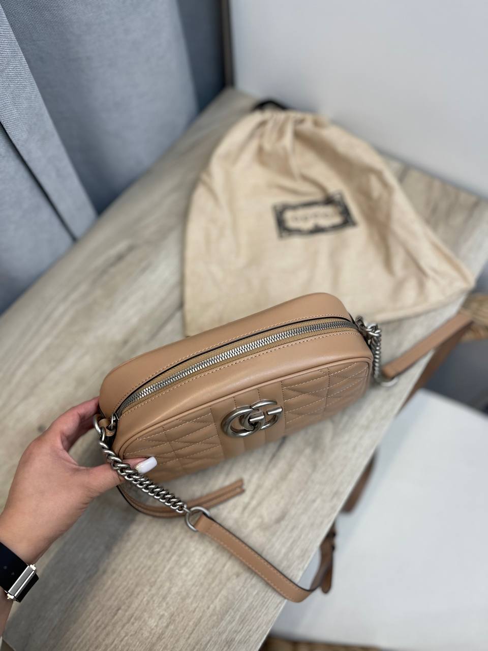 Сумка женская Gucci LUX-96007 - это стильный аксессуар в классическом стиле. Она выполнена в нежном бежевом цвете с ромбовидной стежкой. Эта сумка, с узнаваемым логотипом, станет идеальным дополнением к любому образу.