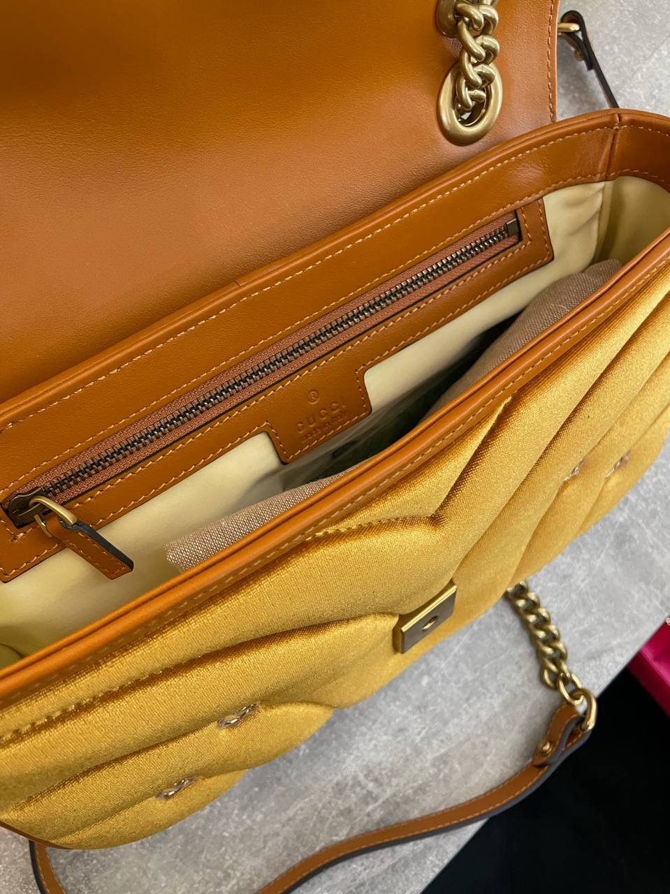 Сумка женская Gucci LUX-101583 – это стильный аксессуар, который подчеркнет индивидуальность. Сумка выполнена в трендовом горчичном цвете с золотистой фурнитурой. Этот аксессуар сочетает в себе элегантность и функциональность, что делает его идеальным дополнением к любому образу.