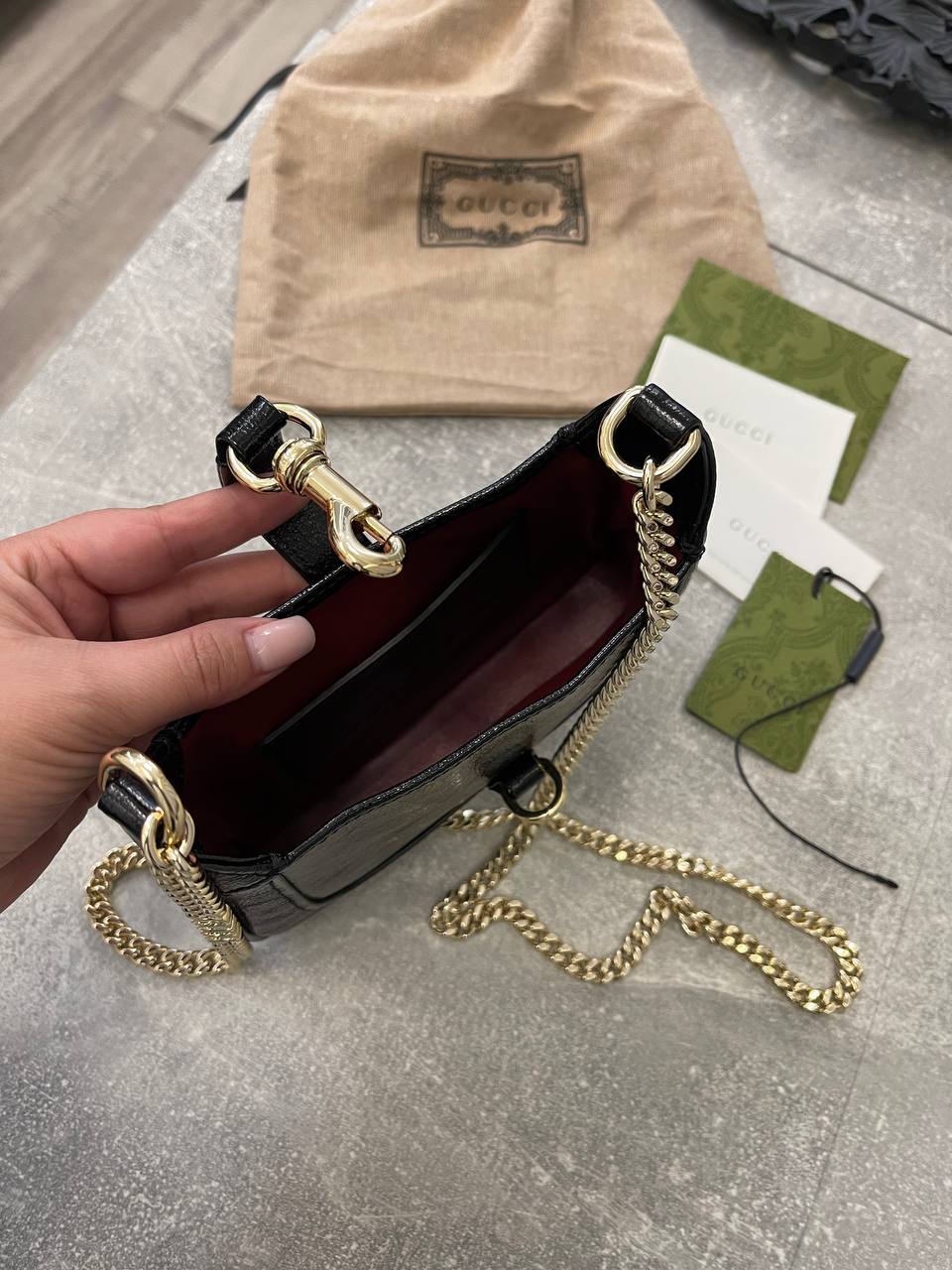 Сумка женская Gucci LUX-104476 – это элегантный аксессуар от известного бренда, сочетающий в себе роскошь и функциональность. Сумка выполнена в черном цвете с текстурированной поверхностью. Предназначена для повседневного использования, подчеркивает стиль и статус своей обладательницы.