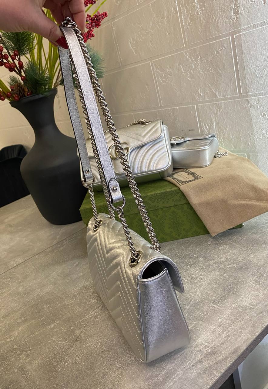 Женская сумка Gucci LUX-114224 — это воплощение элегантности и стиля от известного бренда. Серебристый цвет и стеганая текстура придают сумке изысканный вид. Эта сумка предназначена для повседневного использования и станет прекрасным дополнением к вашему гардеробу.