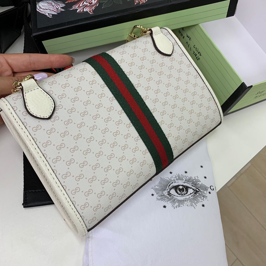 Стильная женская сумка Gucci LUX-15484 выполнена в элегантном дизайне, подчеркивающем статус и изысканный вкус владелицы. Белый цвет с узнаваемым монограммным принтом Gucci и классическими красно-зелеными полосами придает сумке узнаваемость и роскошный вид. Декоративный элемент в виде головы тигра добавляет изделию оригинальности и акцентирует внимание на деталях. Эта модель идеально подойдет для создания элегантных образов на каждый день или для особых случаев.