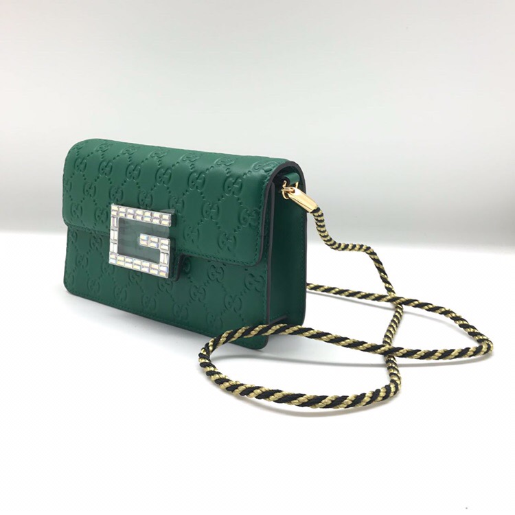 Сумка женская Gucci СЖ-019 – это стильный аксессуар, выполненный в элегантном дизайне, который подчеркнет ваш изысканный вкус. Яркий зеленый цвет и тисненый узор с узнаваемым логотипом бренда придают изделию роскошный вид. Акцентная деталь в виде крупной буквы "G", украшенной кристаллами, добавляет сумке особого шарма. Модель идеально подходит для создания утонченных образов как для повседневной носки, так и для вечерних выходов.