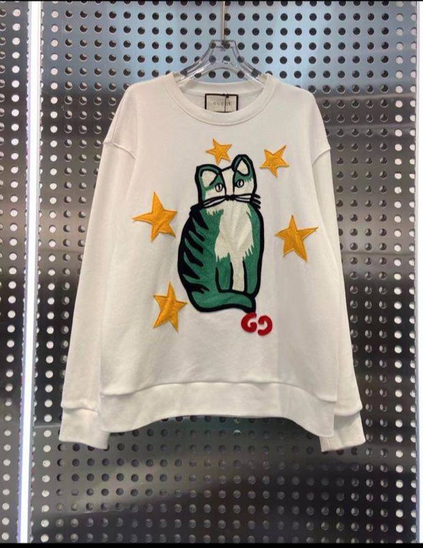 Толстовка Gucci LUX-55887 – это стильный и оригинальный элемент гардероба, который сочетает в себе комфорт и узнаваемый дизайн бренда Gucci. Белый цвет изделия, дополненный яркой аппликацией в виде зеленого кота и желтых звезд, придает образу игривость и выразительность. Эта толстовка идеально подойдет для создания непринужденных повседневных образов.