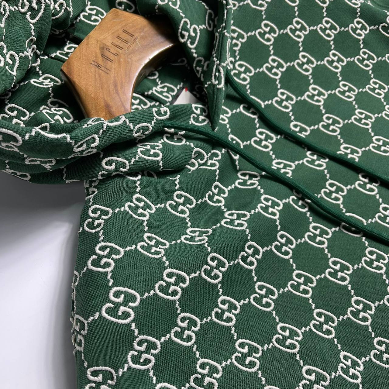 Толстовка Gucci LUX-83619 — это стильный предмет гардероба, выполненный в фирменном стиле бренда. Толстовка зеленого цвета с белым логотипом по всей поверхности, имеет капюшон и манжеты. Идеально подходит для повседневного использования, обеспечивая комфорт и узнаваемый стиль.