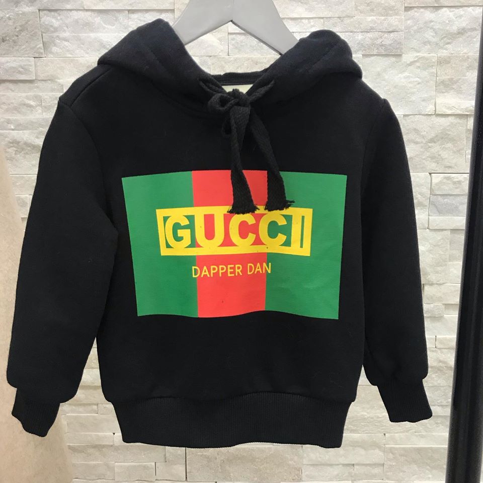 Эта детская толстовка Gucci LUX-27003 выполнена в стильном черном цвете, украшенная культовым логотипом Gucci и надписью "Dapper Dan". Модель имеет капюшон со шнурками и прямой крой, что делает ее идеальным выбором для повседневной носки.