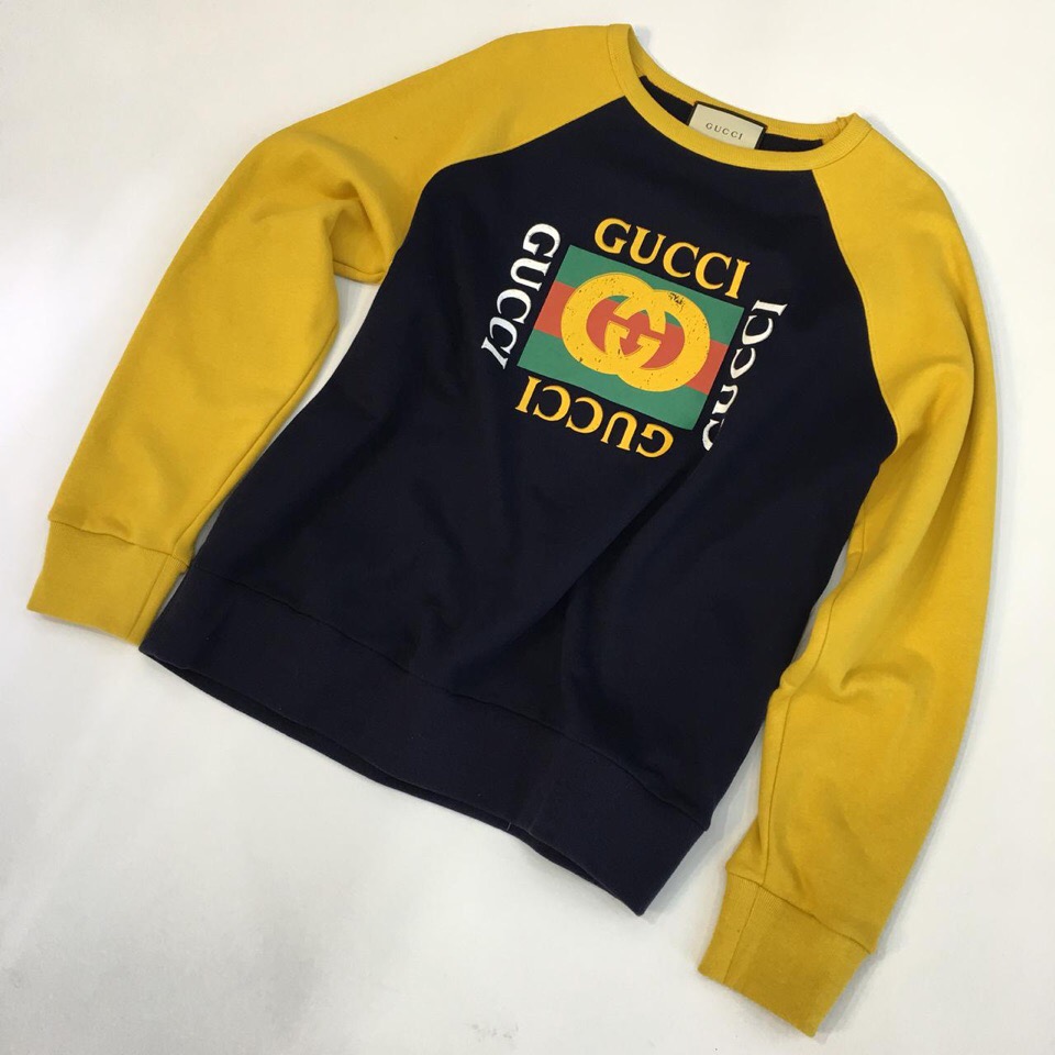 Представляем стильную толстовку Gucci ОДЖ-325, выполненную в контрастном дизайне с темно-синим корпусом и ярко-желтыми рукавами. На груди красуется культовый логотип Gucci, обрамленный надписями бренда. Эта модель идеально подходит для создания модных повседневных образов, сочетая в себе комфорт и узнаваемый стиль.