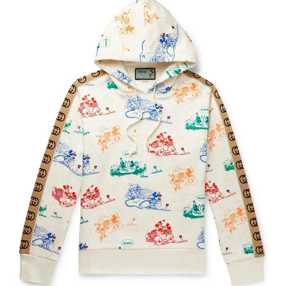 Эта толстовка женская Gucci LUX-28487 выполнена в стиле кэжуал с элементами Disney. Светлый фон украшен забавными принтами с Микки Маусом и его друзьями, а боковые стороны дополнены фирменной монограммой Gucci. Это идеальный выбор для создания яркого и непринужденного образа.