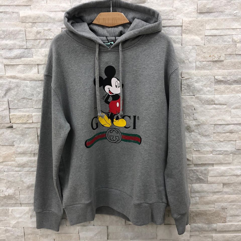 Женская толстовка Gucci LUX-29113 выполнена в стиле кэжуал с оригинальным принтом Микки Мауса и логотипом бренда. Серый цвет и классический крой делают эту толстовку универсальной. Она идеально подходит для создания стильных и комфортных образов на каждый день.