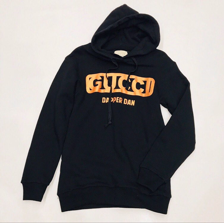 Стильная женская толстовка Gucci ОДЖ-051 выполнена в черном цвете и украшена ярким принтом с названием бренда и надписью "Dapper Dan". Модель имеет капюшон и удобный крой, что делает ее идеальным выбором для повседневных образов. Эта толстовка идеально сочетает в себе комфорт и модный дизайн.