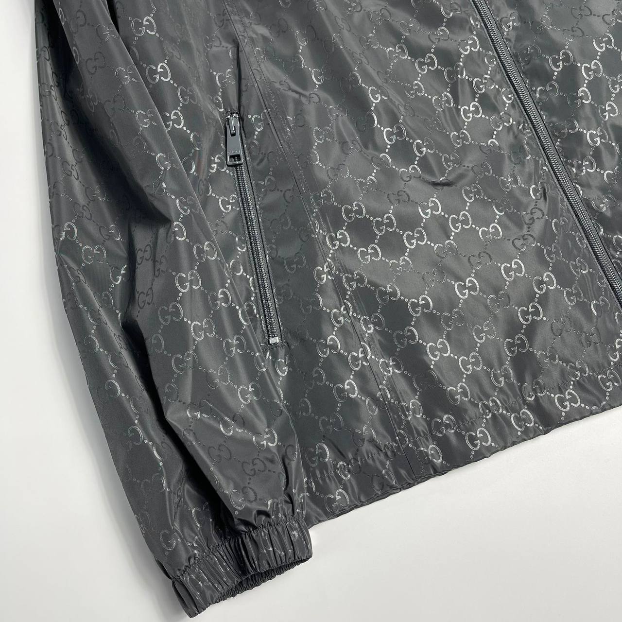 Ветровка Gucci LUX-104297 – стильная ветровка, сочетающая в себе практичность и элегантность. Модель выполнена в темно-сером цвете с узнаваемым узором логотипов бренда. Она имеет капюшон и застежку-молнию, что делает ее идеальной для защиты от ветра и небольшого дождя.