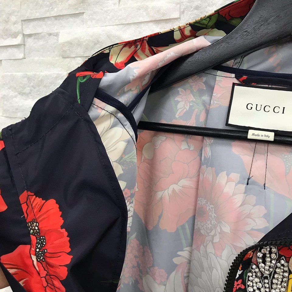 Эта женская ветровка Gucci LUX-15688 отличается ярким цветочным принтом на темном фоне, что придает ей элегантный и в то же время дерзкий вид. Модель с капюшоном и застежкой-молнией идеально подойдет для создания стильных повседневных образов. Декоративный элемент с логотипом бренда и кристаллами добавляет изделию роскоши.