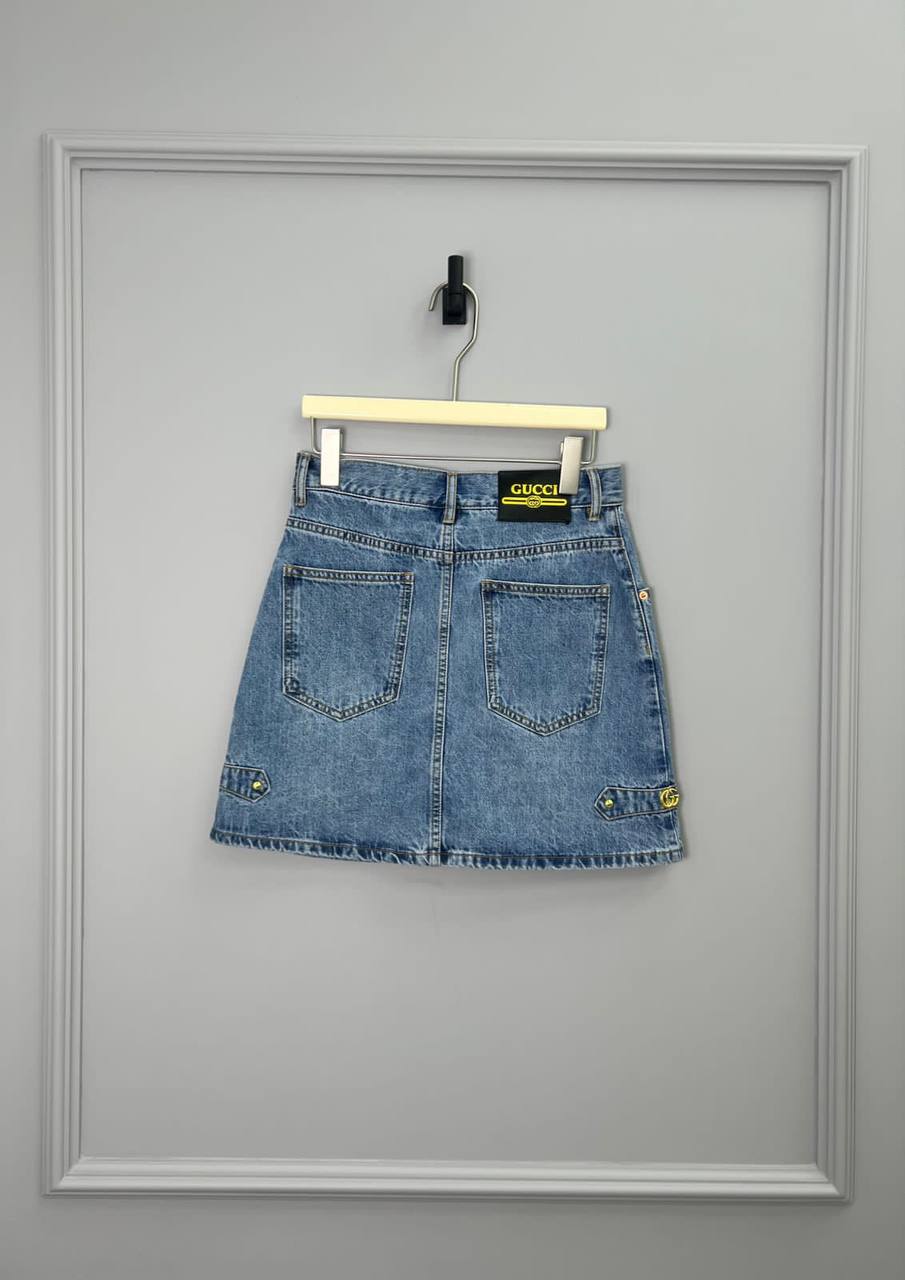 Юбка Gucci LUX-91621 - это стильная джинсовая юбка, представляющая собой классический деним с деталями фирменного стиля. Юбка выполнена в голубом цвете с текстурой денима, подходит для повседневного использования и создания различных образов.