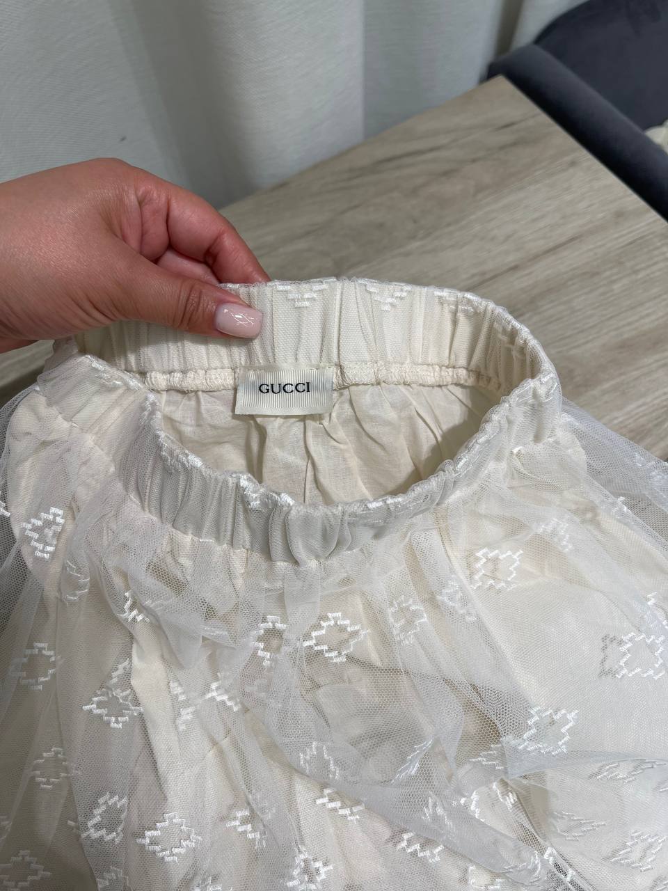 Юбка Gucci LUX-120031 – это элегантная юбка, которая представляет собой сочетание нежности и стиля. Юбка выполнена в кремовых тонах с элементами вышивки, которая создает изысканный узор. Такая юбка станет прекрасным дополнением к любому гардеробу, подходя для различных событий.