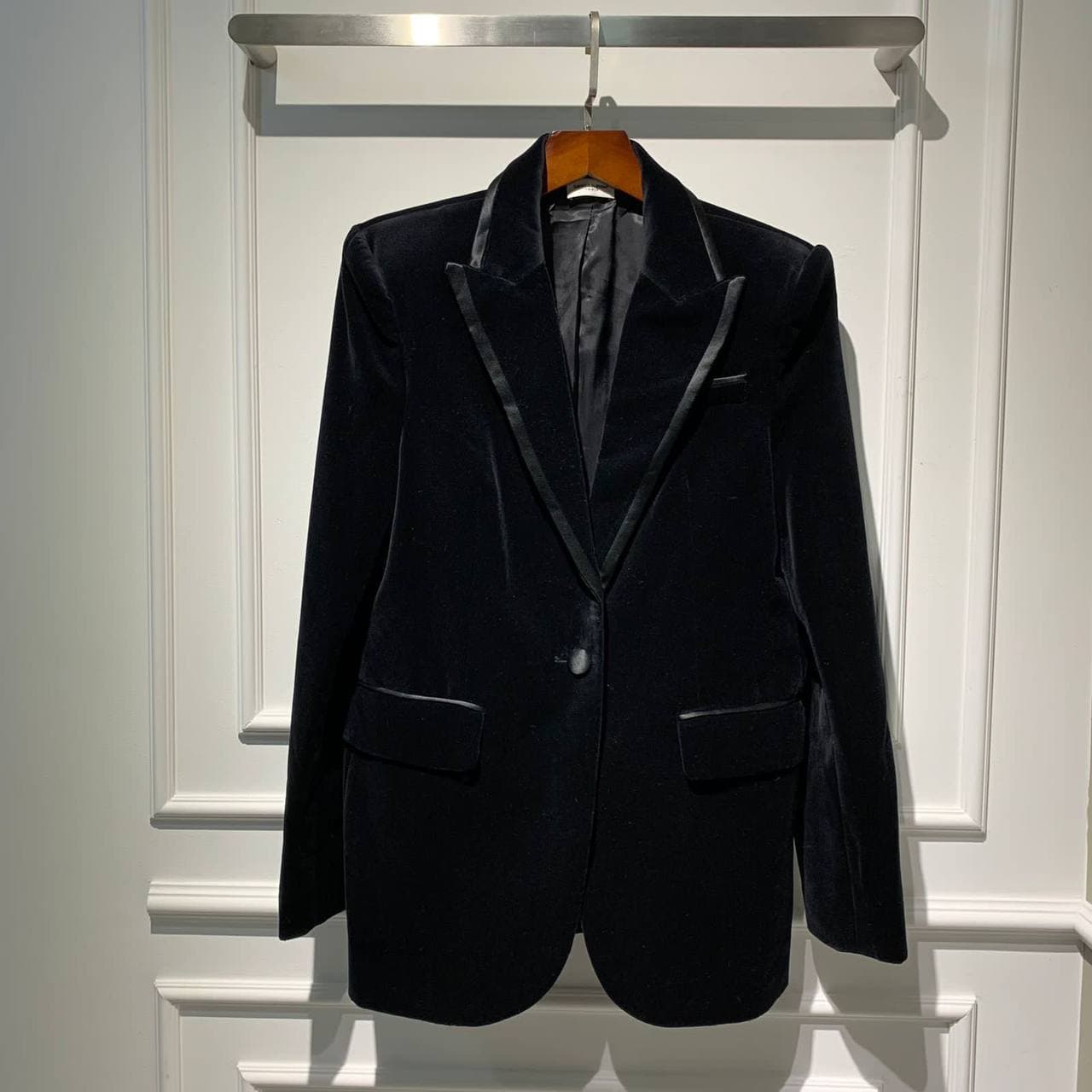 Элегантный черный бархатный жакет Gucci LUX-58179 — это воплощение роскоши и утонченного стиля. Изделие выполнено в классическом приталенном силуэте, подчеркивающем фигуру, и декорировано контрастной атласной отделкой лацканов. Этот жакет идеально подойдет для создания эффектных вечерних и деловых образов, придавая им нотку изысканности.