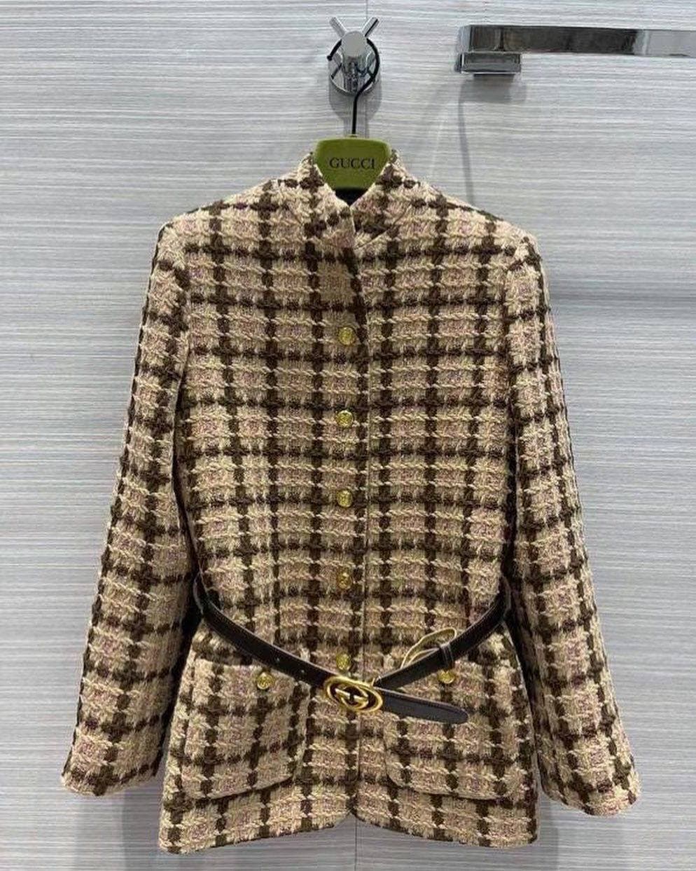 Представленный жакет Gucci LUX-62204 – это элегантное решение для создания стильных образов. Классический крой и узнаваемый узор "гусиная лапка" в коричнево-бежевых тонах придают изделию утонченный вид. Дополнительный акцент в виде кожаного ремня с фирменной пряжкой G подчеркивает талию и добавляет изысканности. Этот жакет идеально подойдет для дополнения как деловых, так и повседневных нарядов, придавая им роскошный вид.