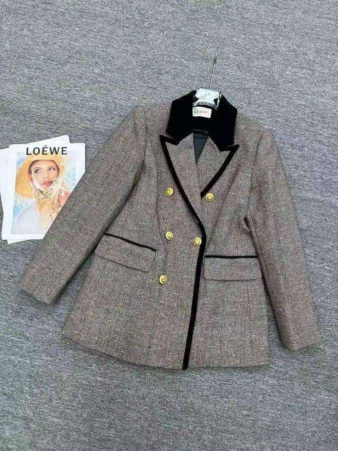 Жакет Gucci LUX-97754 - это элегантный предмет гардероба от известного бренда. Жакет выполнен в классическом стиле, сочетая серый цвет с черными элементами отделки. Он имеет текстурированный внешний вид и отлично подойдет для создания стильных образов.