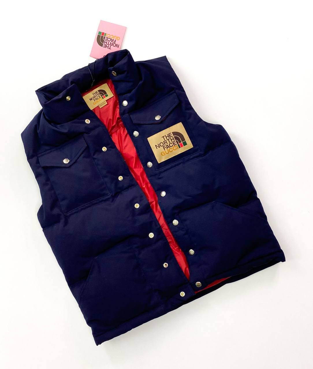 Жилет Gucci LUX-55611 — это стильное и функциональное дополнение к гардеробу, сочетающее в себе элегантность Gucci и надежность The North Face. Темно-синий цвет и классический дизайн делают его универсальным выбором для повседневного ношения. Наличие яркой красной подкладки добавляет изюминку и контраст.