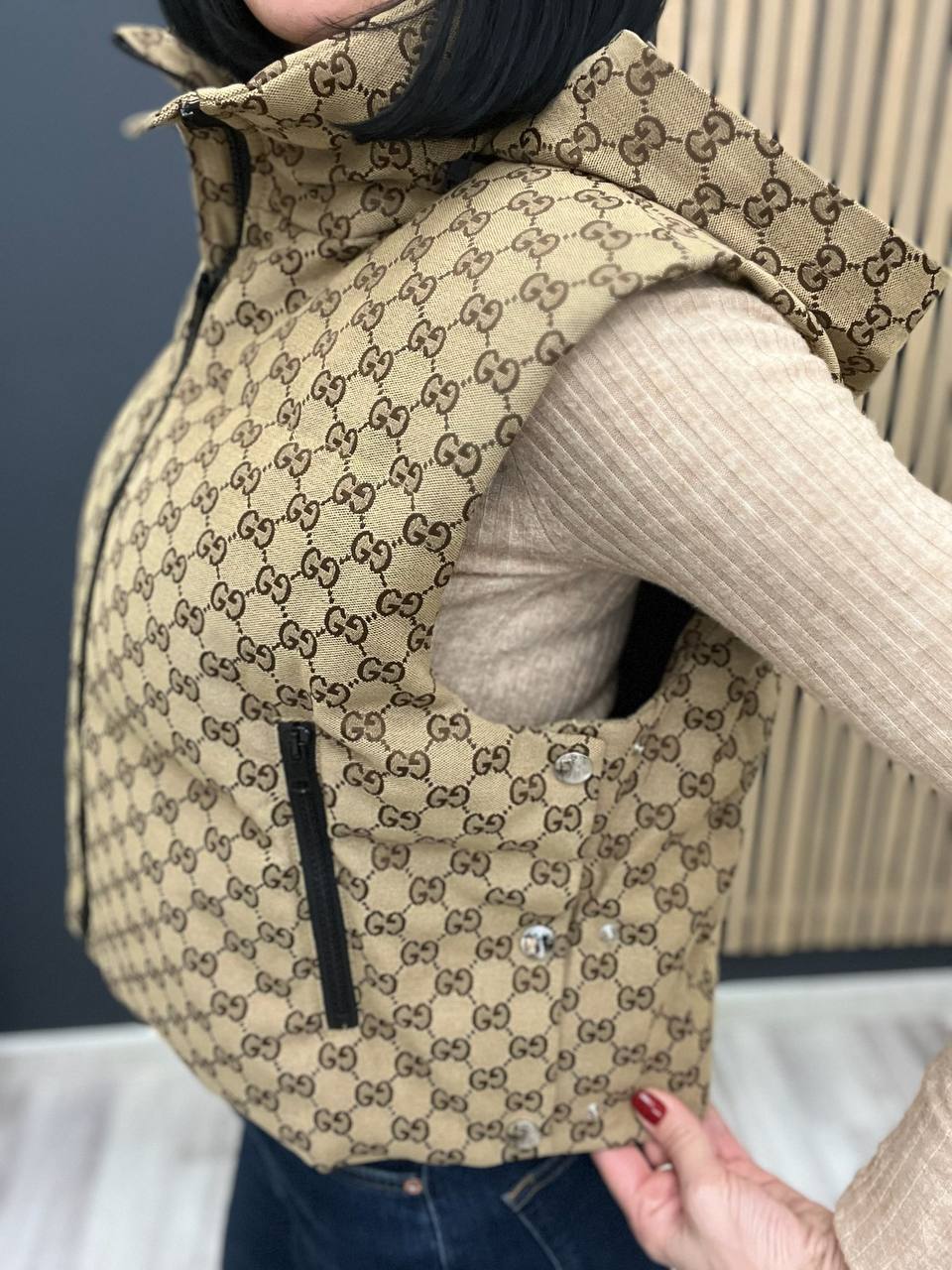 Жилет Gucci LUX-100640 – это стильный и узнаваемый элемент гардероба. Жилет выполнен в фирменном стиле бренда, с узнаваемым принтом GG. Он идеально подходит для создания модных образов в демисезонный период.