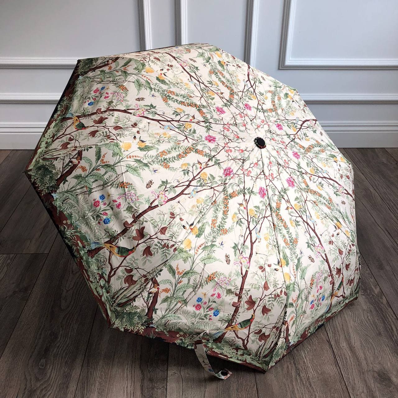 Зонт Gucci LUX-56487 представляет собой изысканный аксессуар, выполненный в стиле бренда Gucci. Его купол украшен ярким и детализированным принтом, изображающим пышную растительность, цветы, птиц и бабочек, что придает ему уникальный и художественный вид. Этот зонт станет не только практичной защитой от непогоды, но и стильным дополнением к образу.