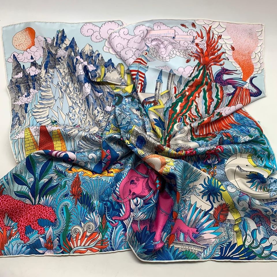 Платок Hermes LUX-30214 — это яркое произведение искусства, которое мгновенно добавляет изысканности любому образу. Этот платок, украшенный детализированным принтом с экзотическими животными, вулканами и горными пейзажами, представляет собой настоящее воплощение смелости и утонченности. Дизайн богат яркими красками и сложными узорами, что делает его универсальным аксессуаром для различных стилей.