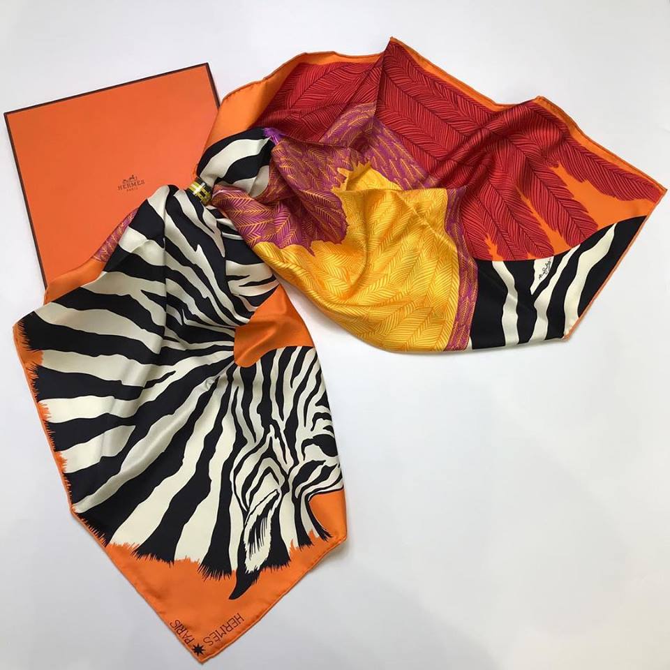 Шелковый платок Hermes АКС-1350 – это эксклюзивный аксессуар, сочетающий в себе роскошь бренда Hermes и уникальный дизайн. Яркие цвета и контрастные принты, изображающие зебру и стилизованные перья, делают его заметным элементом любого образа. Этот платок станет идеальным дополнением как к повседневному, так и к вечернему наряду, придавая ему изысканность и индивидуальность.