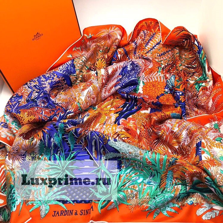 Шелковый платок Hermes АКС-774 — это настоящее произведение искусства, выполненное в ярком, экзотическом стиле. Изысканный принт, напоминающий тропический сад, придает изделию неповторимый шарм и элегантность. Этот платок от Hermes станет идеальным дополнением к любому образу, добавляя ему роскоши и индивидуальности. Его универсальность позволяет использовать его как головной убор, шейный аксессуар или даже как часть сумки.