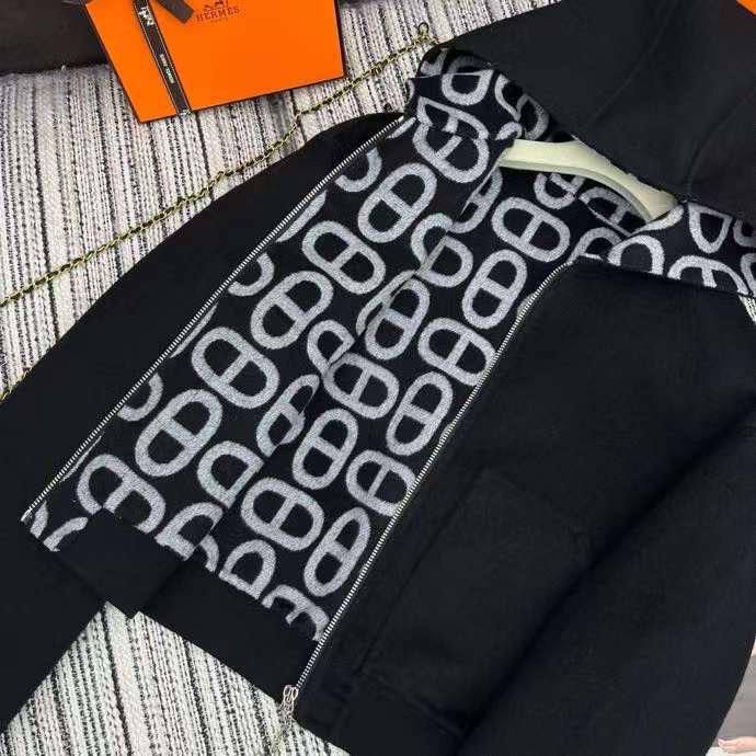 Бомбер Hermes LUX-109420 — это стильная куртка черного цвета с капюшоном, предназначенная для повседневной носки. Капюшон имеет светлую подкладку с узором. Куртка застегивается на молнию.