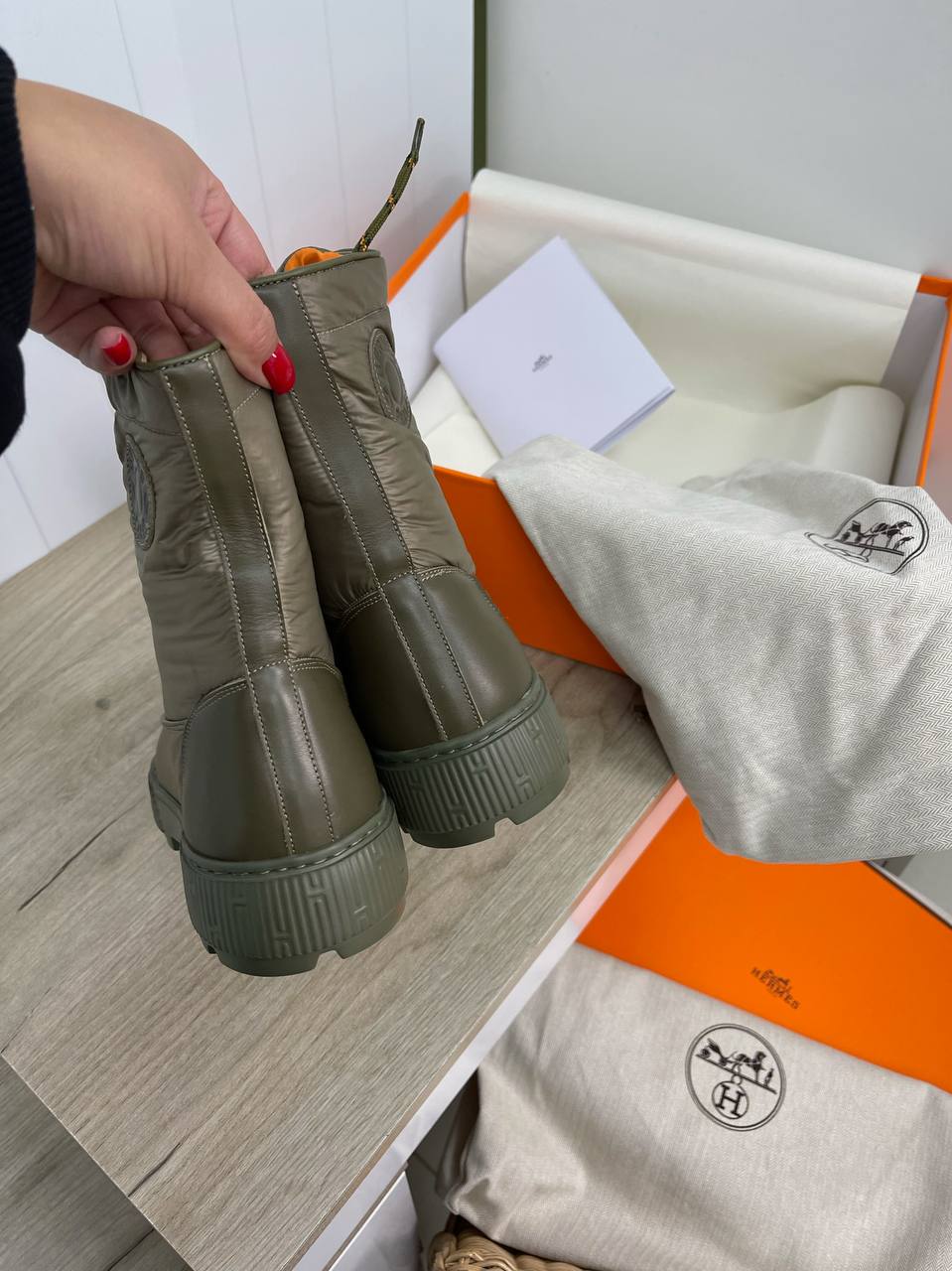 Ботинки Hermes LUX-95607 - это стильные ботинки, представленные в цвете хаки. Они сочетают в себе элементы спортивного стиля и повседневной элегантности. Идеальный выбор для тех, кто ценит комфорт и актуальный дизайн.