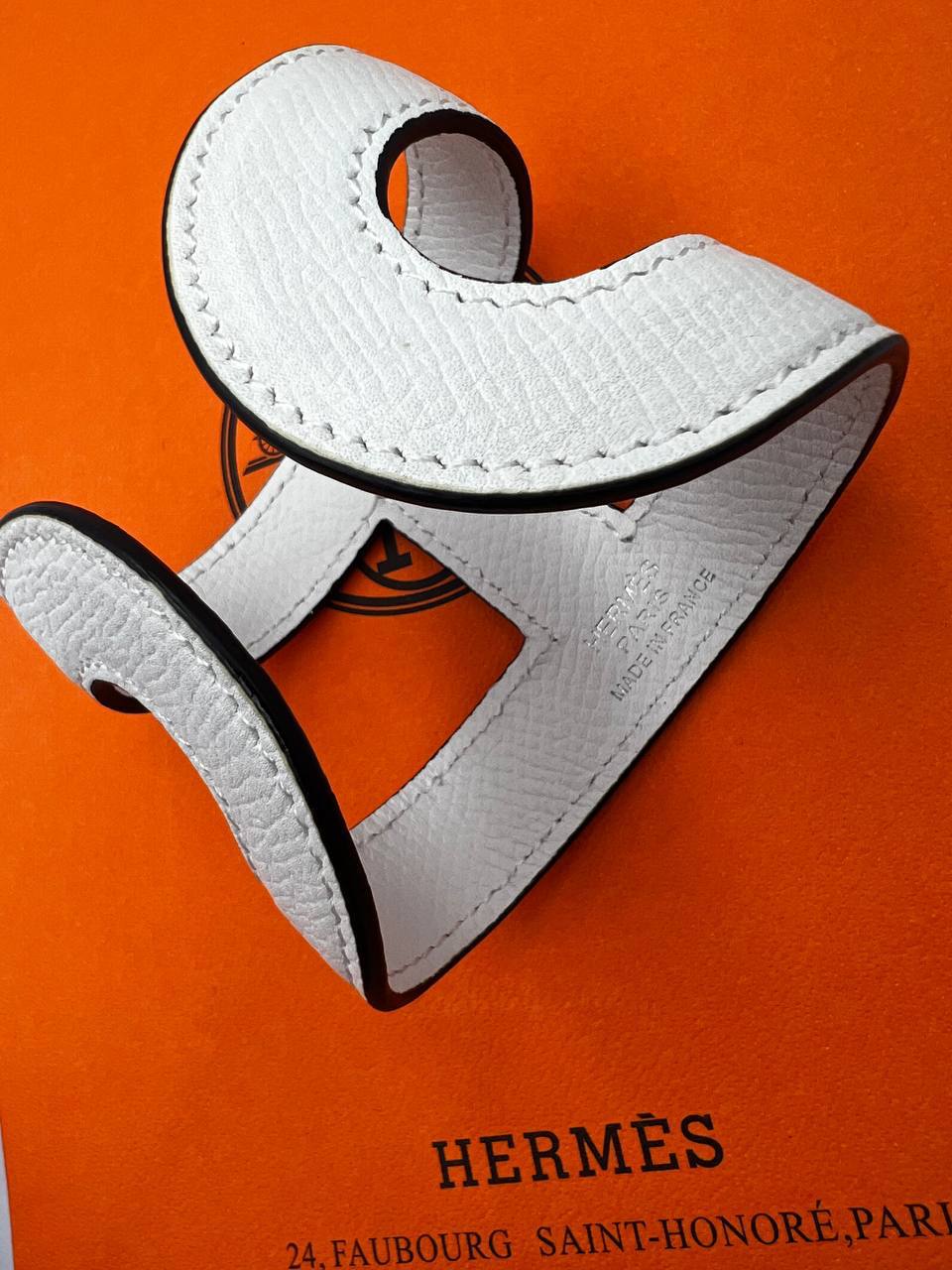 Браслет Hermes LUX-105033 — это элегантный аксессуар, созданный для повседневного использования. Браслет выполнен в современном стиле, имеет белый цвет с контрастными черными краями, что придает ему изысканный вид. Текстура материала браслета создает приятные тактильные ощущения.