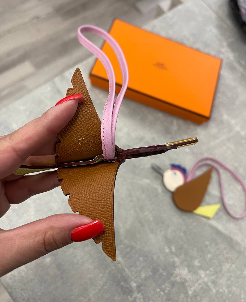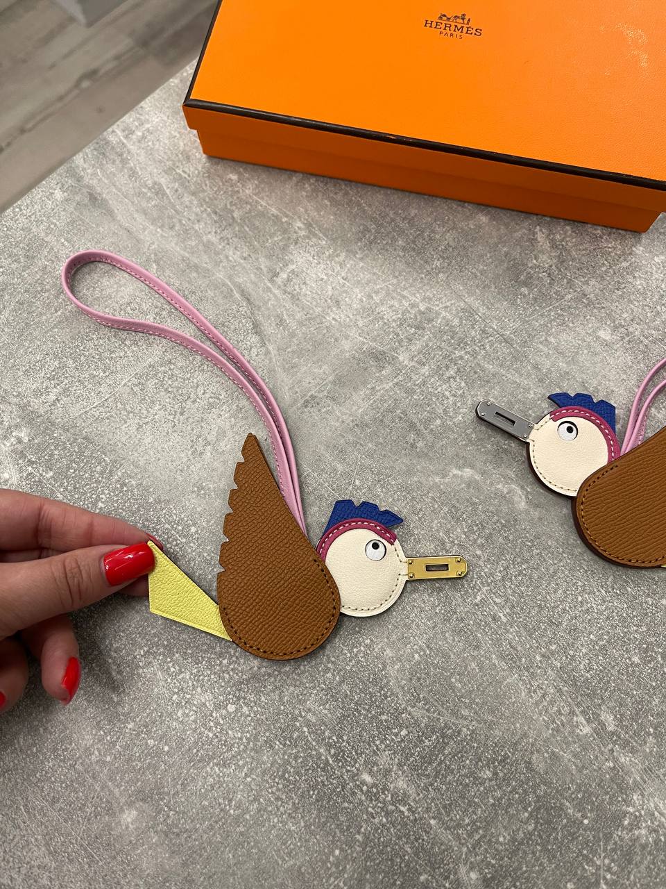 Брелок Hermes LUX-102963, представленный на изображении, выполнен в виде стилизованной птицы. Брелок имеет яркую цветовую гамму, что делает его привлекательным аксессуаром. Предназначен для использования в качестве брелока для ключей или украшения для сумки.