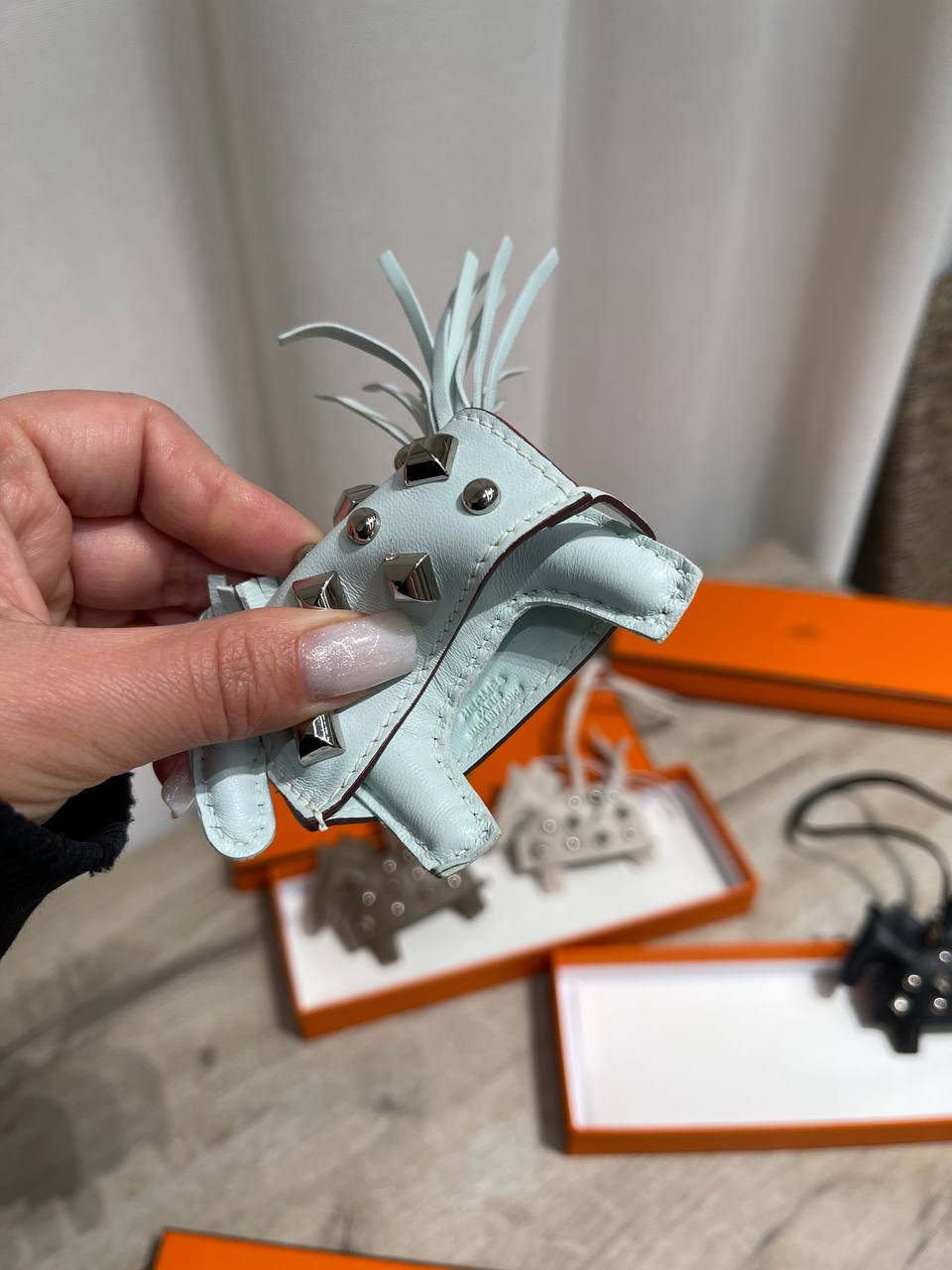 Брелок Hermes – стильный и элегантный аксессуар. Он выполнен в форме лошадки и украшен металлическими деталями. Идеально подходит для украшения сумки или ключей.