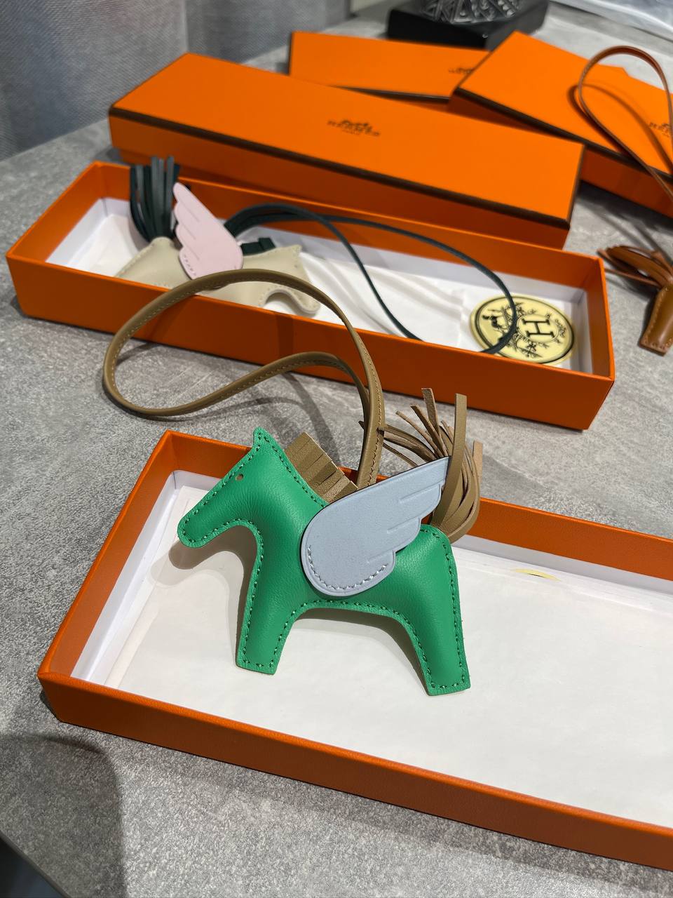 Изящный брелок Hermes, выполненный в форме Пегаса, станет прекрасным дополнением к вашему образу, подчеркивая индивидуальность и хороший вкус. Аксессуар сочетает в себе элегантность и оригинальность.