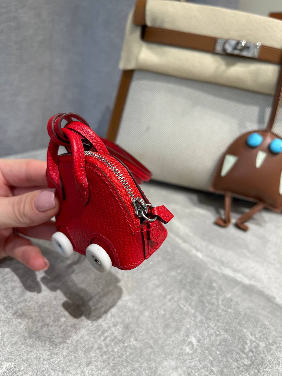 Брелок Hermes – это стильный аксессуар, добавляющий изюминку любому образу. Его яркий дизайн в форме машинки привлекает внимание и подчеркивает индивидуальность.