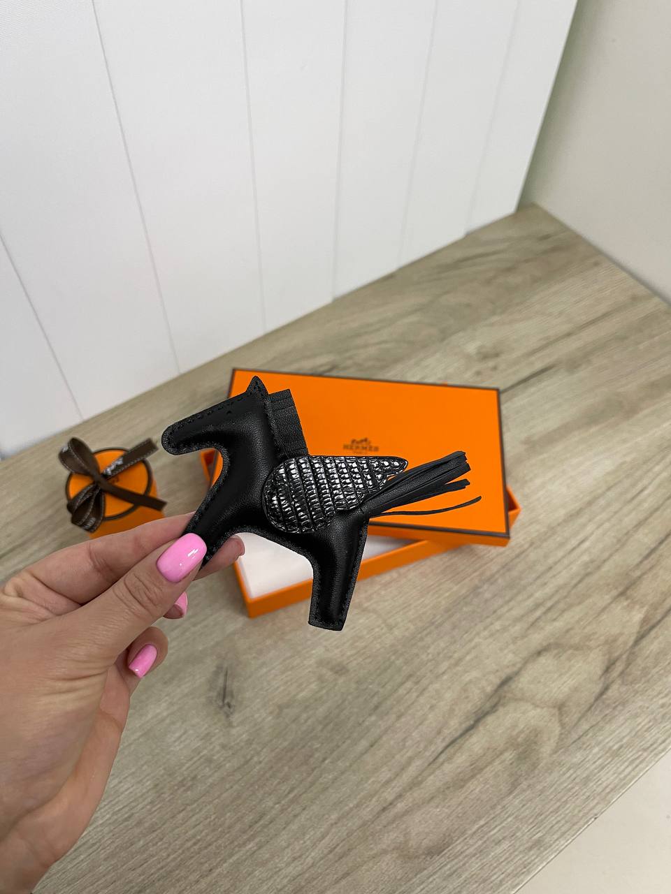 Брелок Hermes LUX-84987 – это изысканный аксессуар, сочетающий в себе элегантность и функциональность. Изделие выполнено в форме лошади, что придает ему оригинальный вид. Черный цвет делает его универсальным дополнением к любому образу, будь то ключи или сумка.