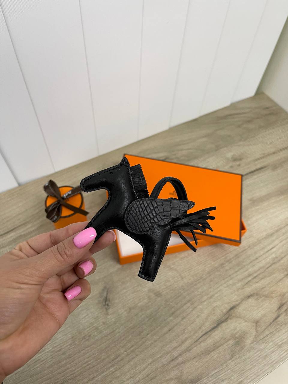Брелок Hermes LUX-85022 представляет собой стильный аксессуар в виде фигурки черного коня с крыльями. Этот брелок может служить оригинальным украшением, например, для ключей или сумок. Его дизайн подчеркнет вашу индивидуальность и станет прекрасным дополнением к любому образу.