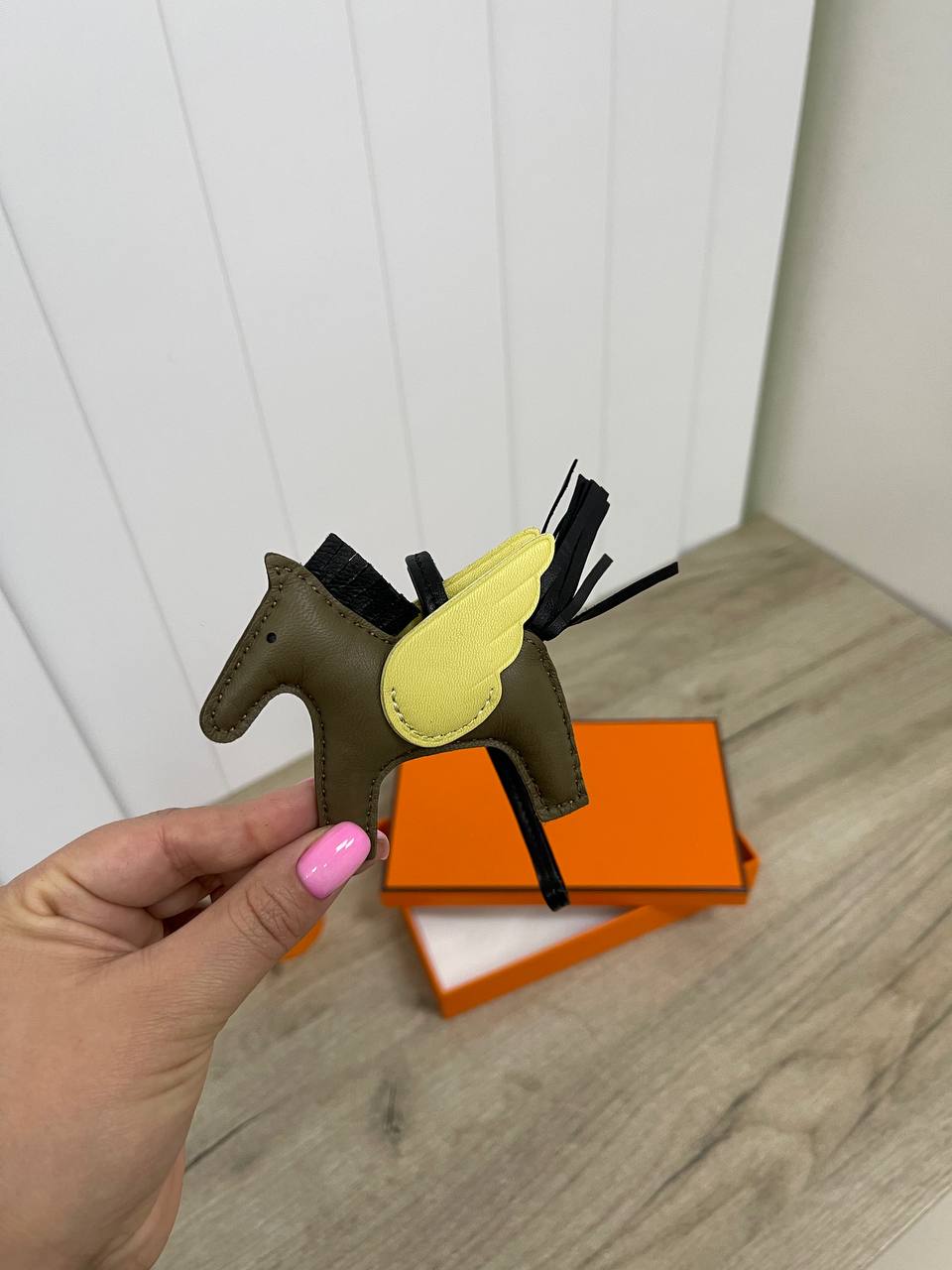 Брелок Hermes LUX-85094 представляет собой изысканный аксессуар, сочетающий в себе элегантность и функциональность. Брелок выполнен в форме лошади с крыльями. Он может использоваться как стильное украшение для ключей, сумки или в качестве самостоятельного аксессуара.