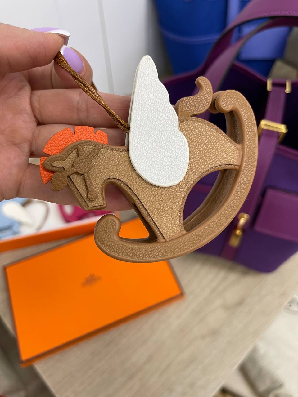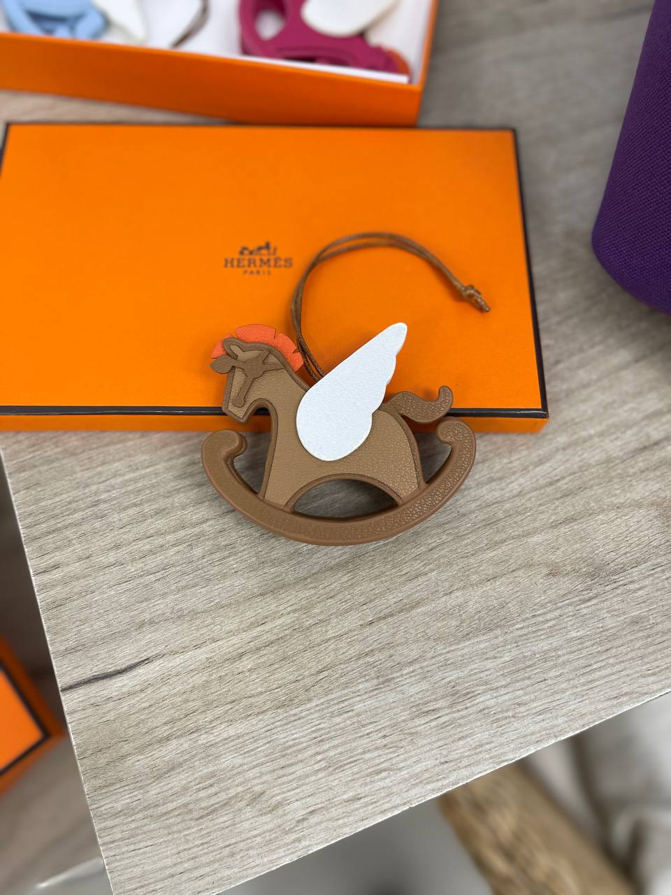 Брелок Hermes LUX-88158 представляет собой стильный аксессуар, который добавит элегантности любому образу. Брелок выполнен в виде фигурки лошадки-качалки с крыльями, что придает ему игривый и в то же время изысканный вид. Он идеально подойдет для украшения сумок, ключей или в качестве подвески на другие аксессуары.