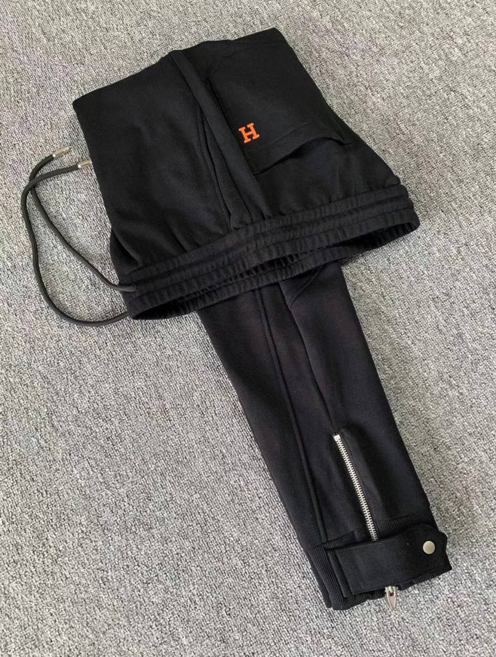 Брюки Hermes LUX-59076 представляют собой стильное и современное решение для повседневного гардероба. Модель выполнена в классическом черном цвете, дополненная элегантным оранжевым логотипом бренда. Актуальный крой и детали делают эти брюки отличным выбором для создания расслабленных, но в то же время изысканных образов.