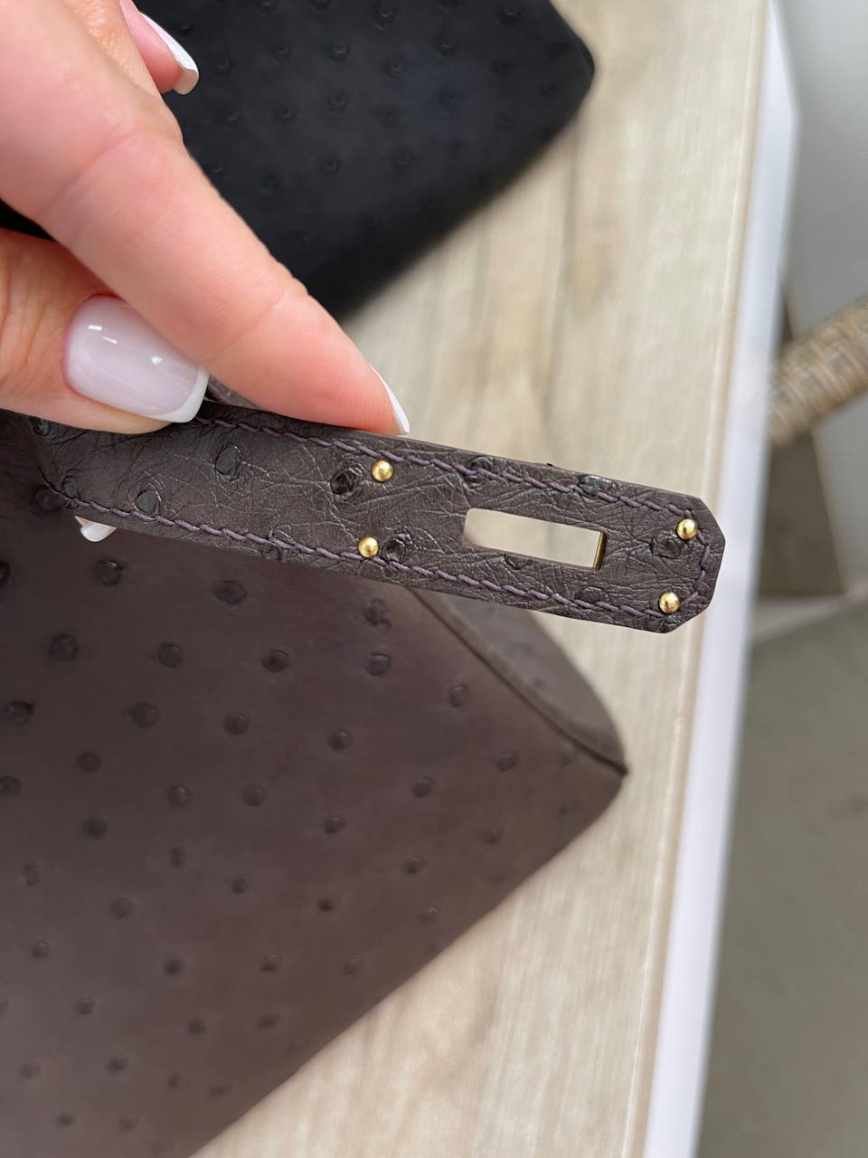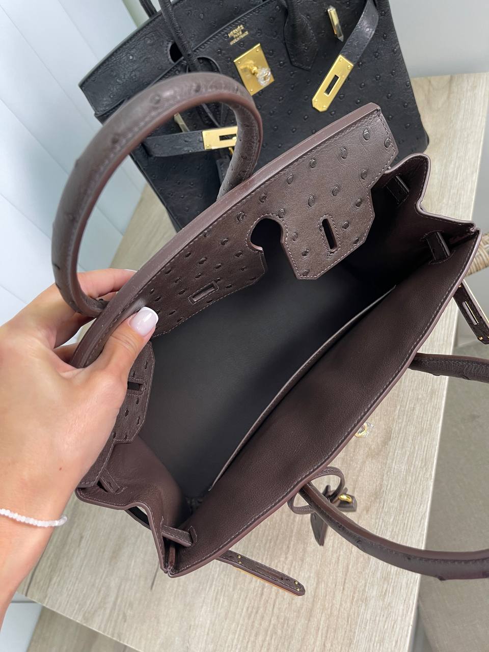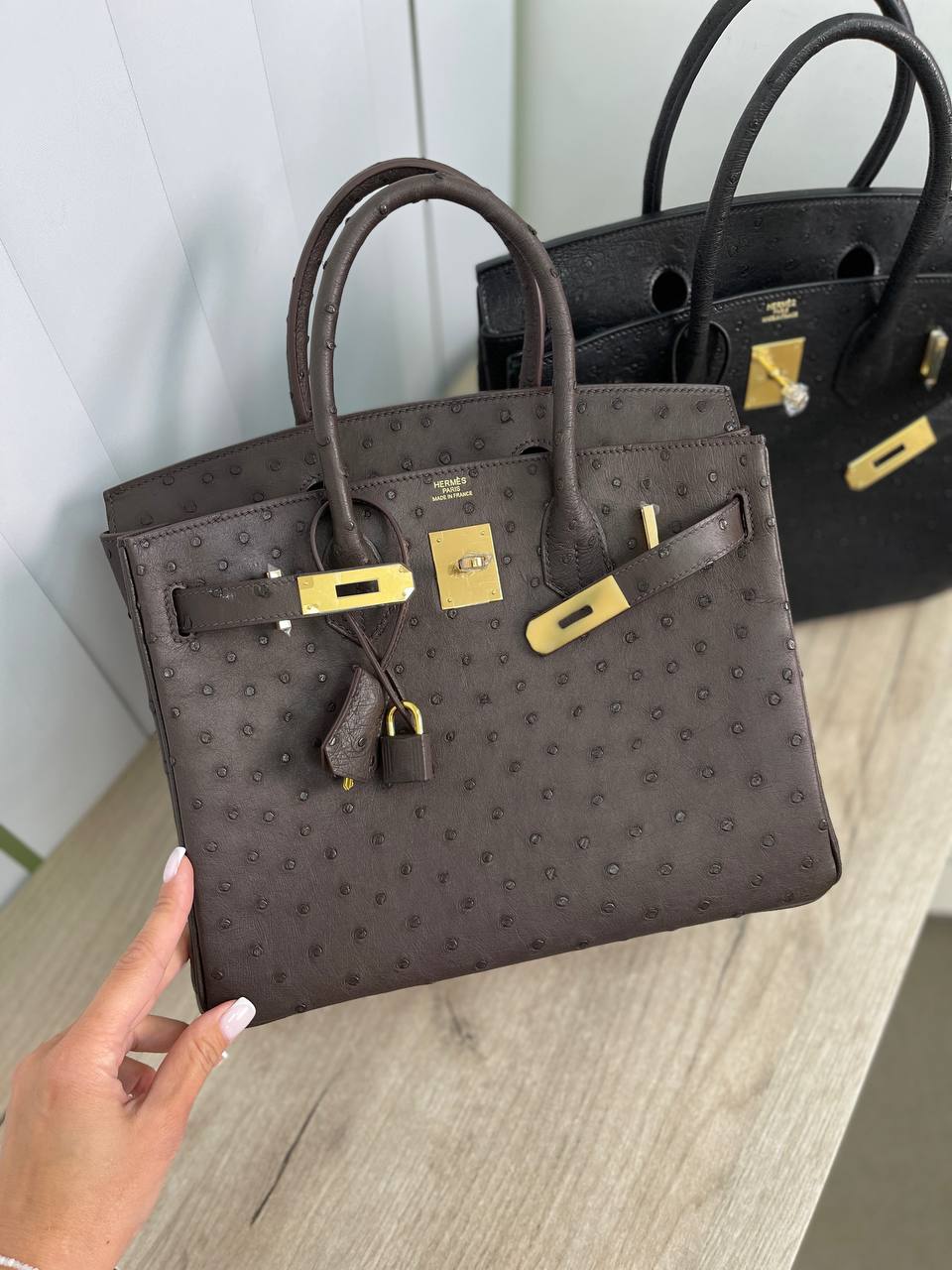Сумка женская Birkin 30 cm Ostrich GHW, LUX-93726 - это роскошный аксессуар от известного бренда. Темно-коричневая сумка с золотистой фурнитурой выполнена в классическом дизайне. Она станет идеальным дополнением к элегантному образу.