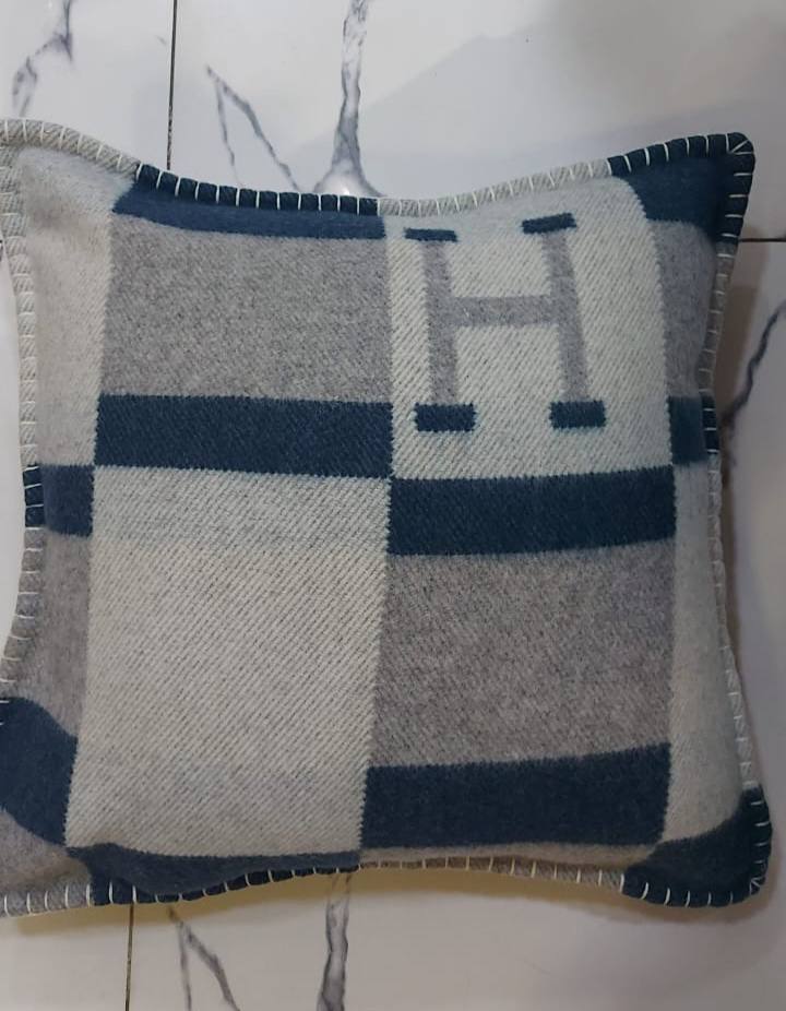 Декоративная подушка Hermes LUX-94062 — это стильный аксессуар для вашего интерьера. Подушка выполнена в клетчатом дизайне с использованием различных оттенков серого и темно-синего цветов. Яркий акцент — крупная буква «H», символизирующая бренд.