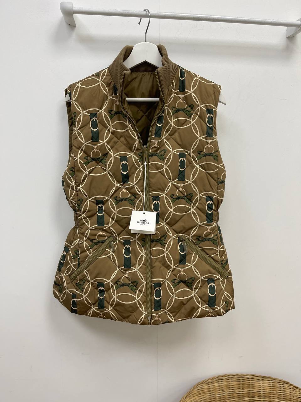 Двухсторонний жилет Hermes LUX-85887 — это стильный предмет гардероба от известного бренда. Жилет выполнен в коричневых тонах с узнаваемым узором. Его дизайн подойдет как для повседневных образов, так и для создания более элегантных ансамблей.