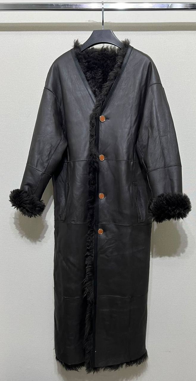 Двухсторонняя дубленка Hermes LUX-114454 – это элегантная модель в классическом стиле, представленная в глубоком черном цвете. Дубленка имеет длинный силуэт, пуговицы и выраженную текстуру меха. Идеально подходит для создания изысканного и теплого образа в холодное время года.