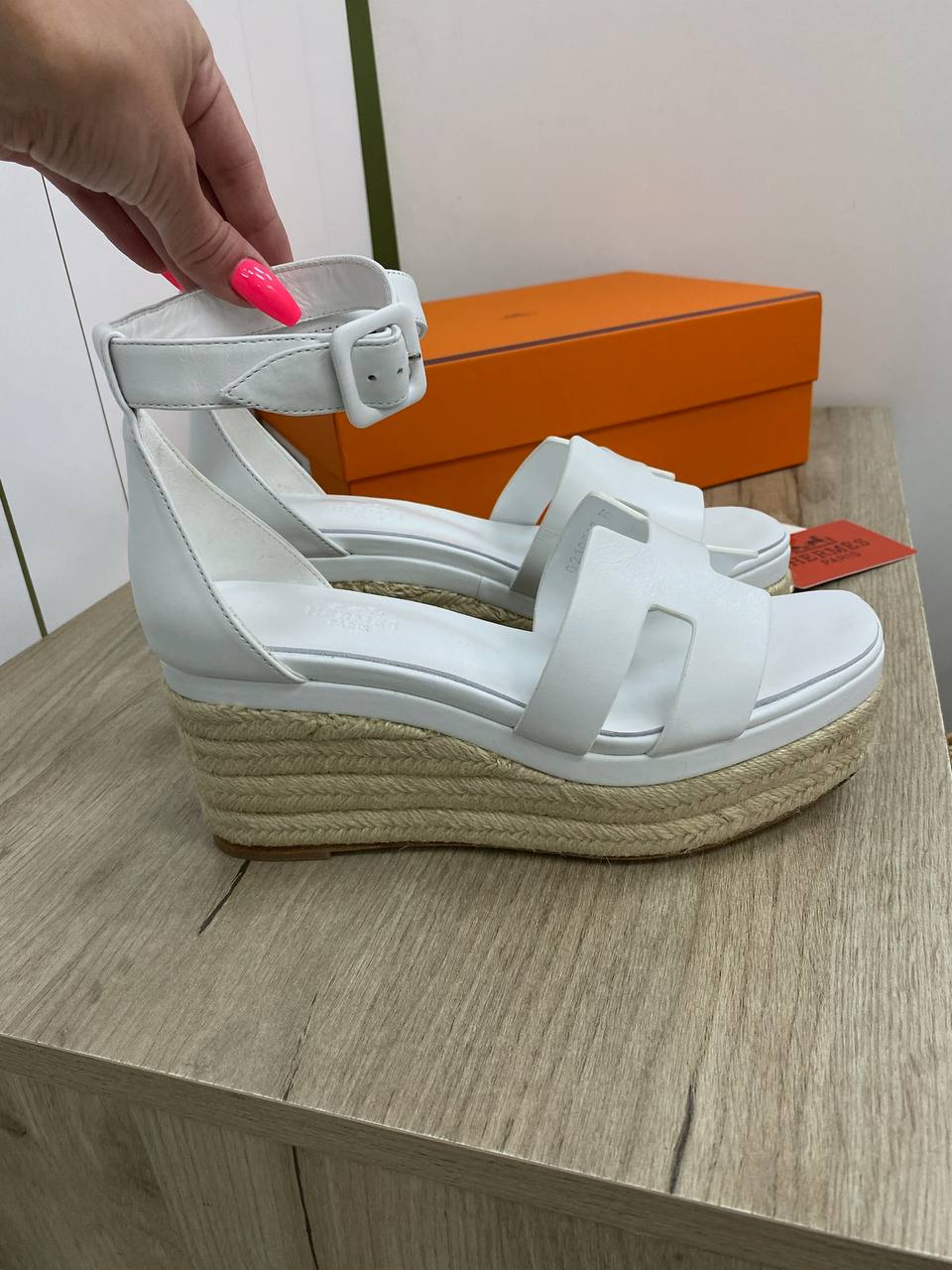 Эспадрильи Hermes Elda Hermes LUX-90840 — это стильные летние босоножки на платформе, выполненные в белом цвете. Эспадрильи имеют классический дизайн с ремешком на щиколотке и танкеткой, что обеспечивает комфорт и элегантность. Идеально подходят для создания летних образов.
